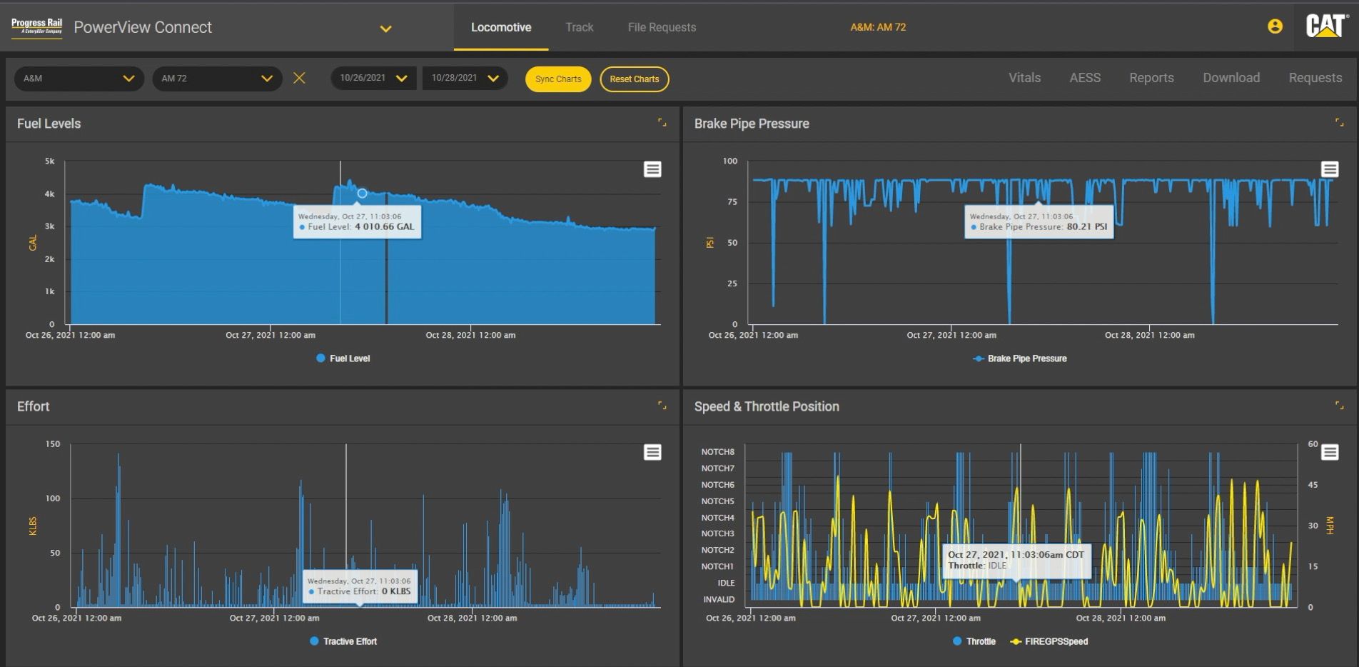 The PowerView system is communications agnostic and can support multiple communications options such as cellular networks as well as leveraging existing network communications (such as PTC comms). The system easily enables file downloads and live data streaming from the PowerView as well as live video streaming. PowerView Connect includes a Customizable Alarm Generator, where users can establish alarming criteria and logic and generate realtime alarms across an entire fleet or sub-fleet of locomotives.