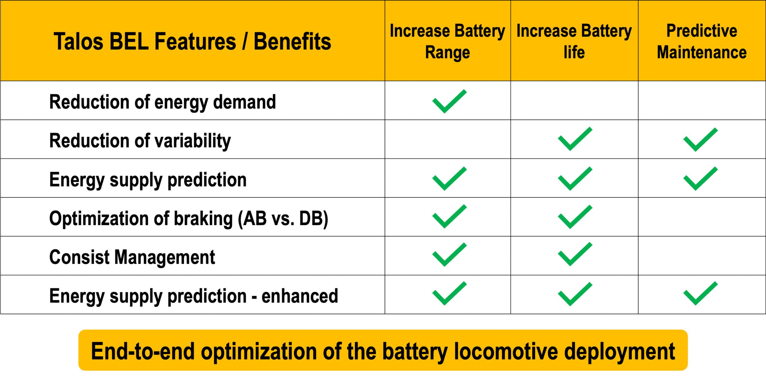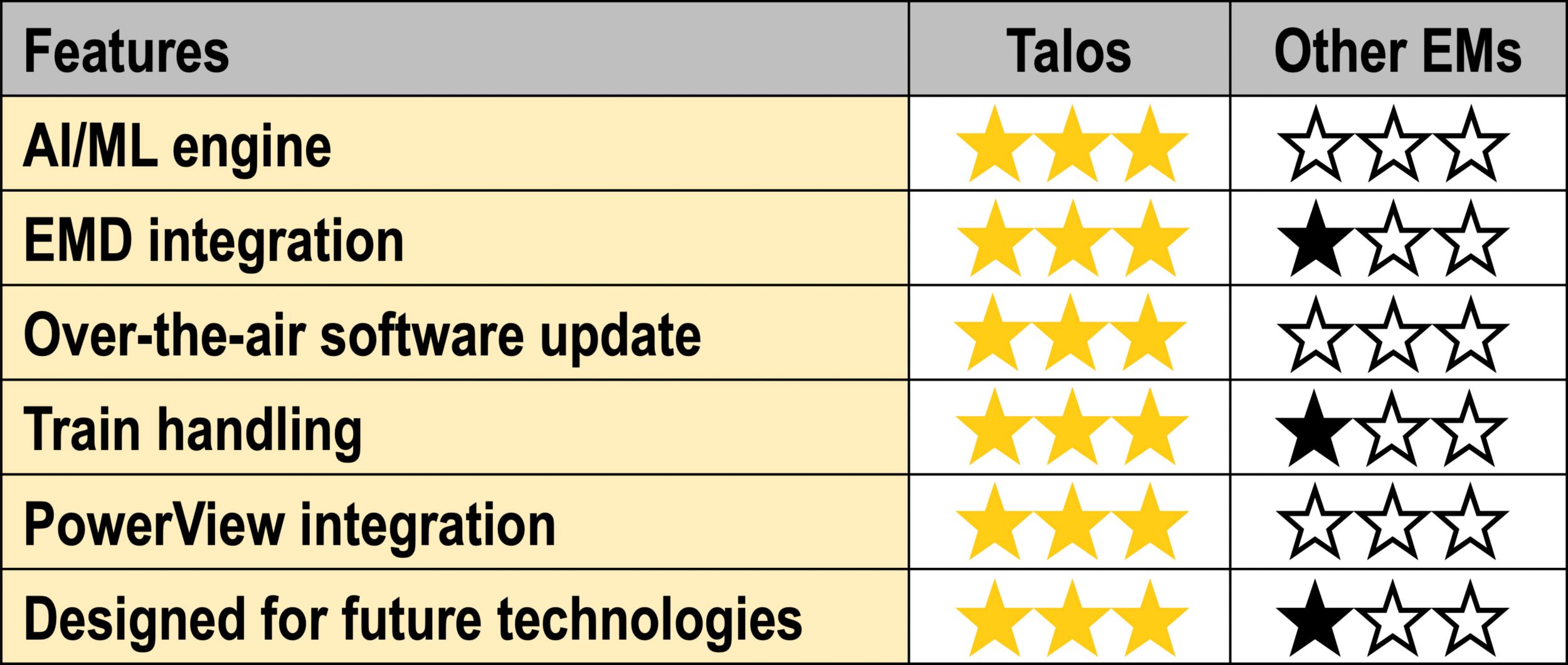 En s'adaptant au comportement des trains et aux objectifs opérationnels des clients, Talos offre: