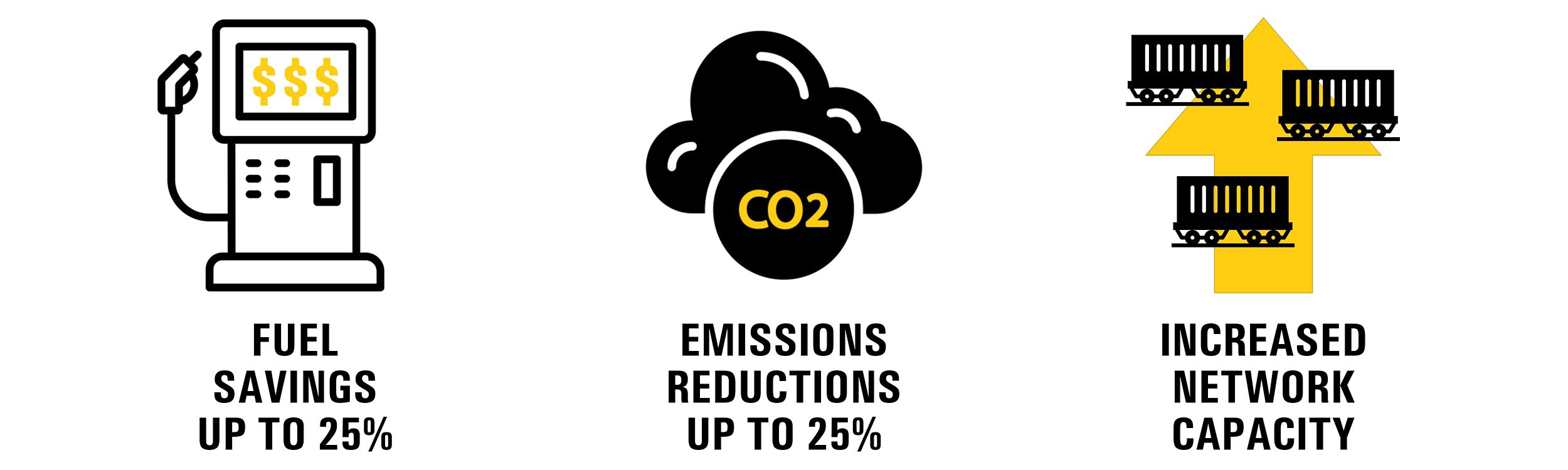 Le système d'automatisation des trains Talos de Progress Rail exploite une technologie de pointe pour contrôler la commande des gaz et les freins dynamiques. Talos intègre la topologie des voies, les informations sur la composition du train, les données d'itinéraire et l'analyse historique pour élaborer une stratégie de conduite unique et optimisée, permettant ainsi des gains significatifs en termes de consommation de carburant et/ou de temps.